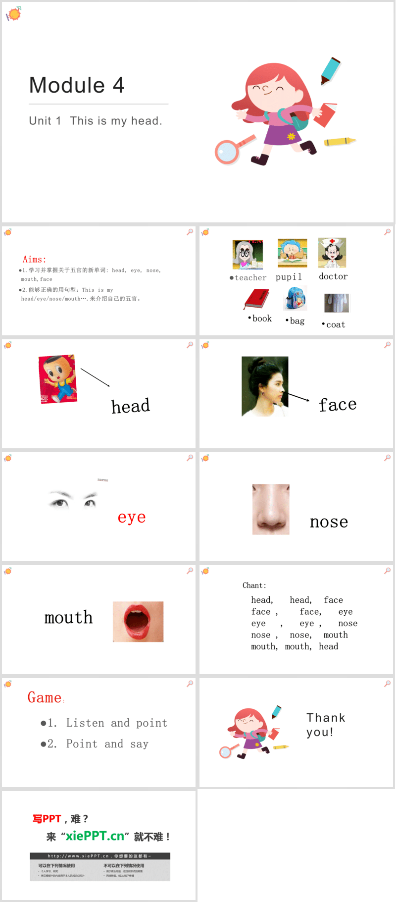 小學英語外研版一年級下冊《This is my head》課件