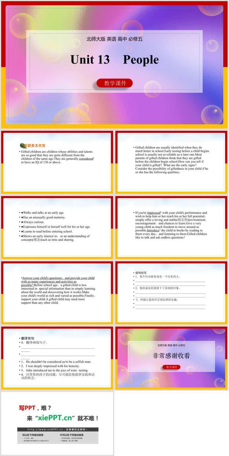 高中英語北師大版高二上冊《Unit 13 People》課件