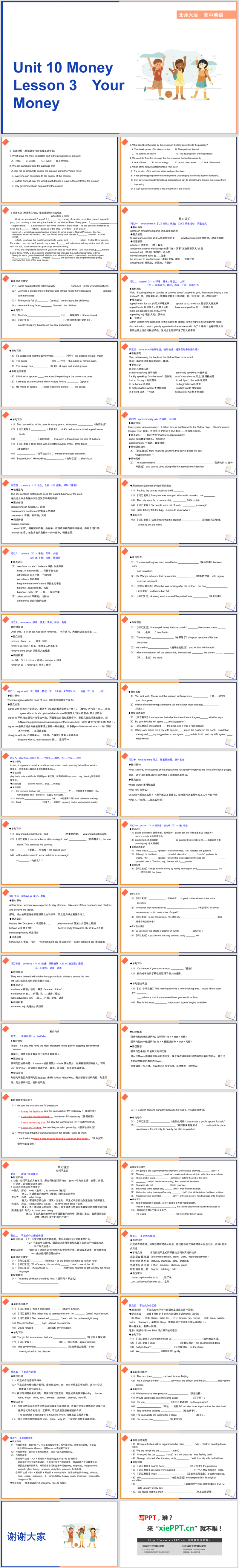 高中英語北師大版高一下冊《Unit 10 Money Lesso