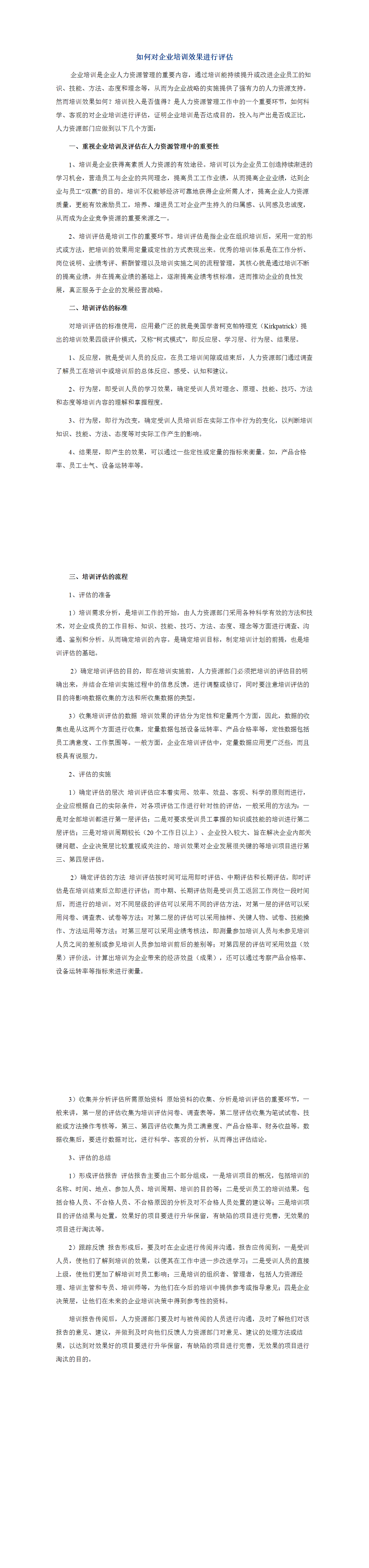 淺談如何做好企業(yè)職工培訓(xùn)效果評(píng)估
