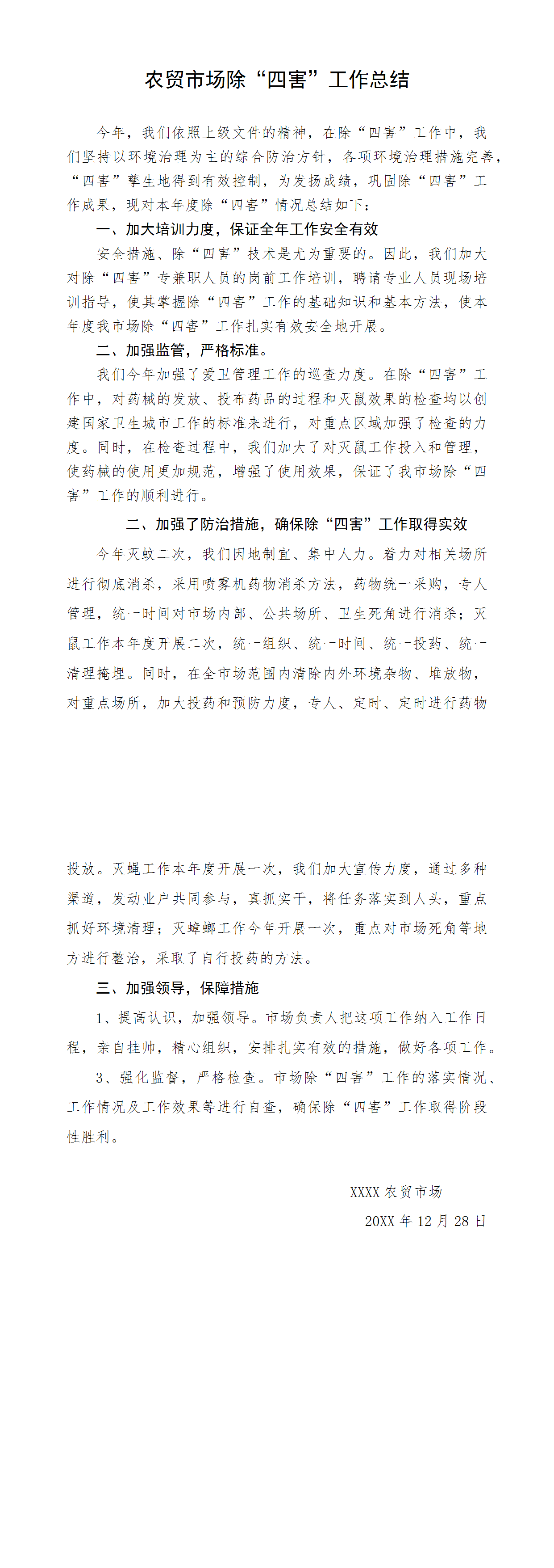 農(nóng)貿(mào)市場(chǎng)除“四害”工作總結(jié)