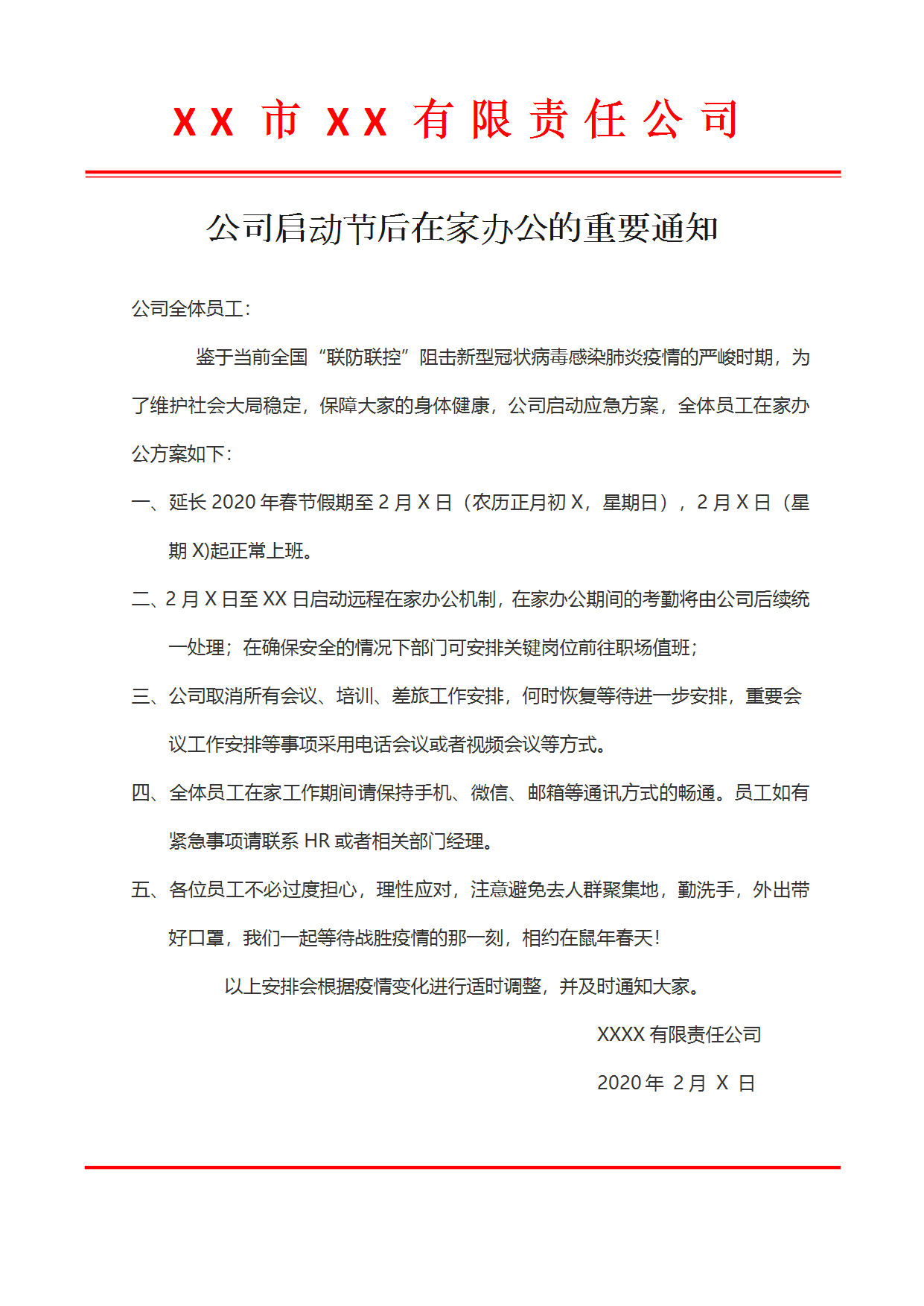公司啟動(dòng)節(jié)后在家辦公通知模板