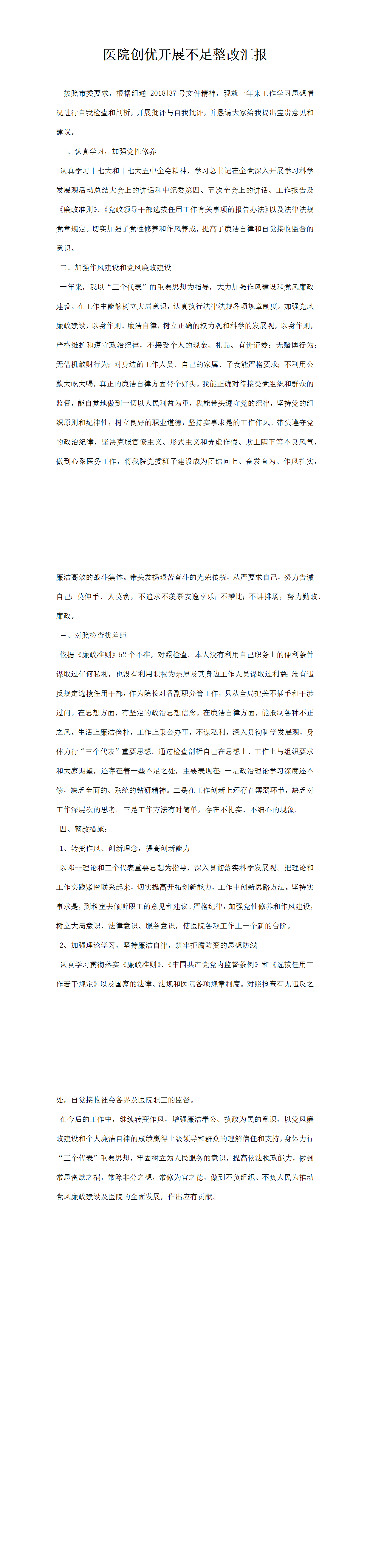 醫(yī)院創(chuàng)優(yōu)開展不足整改匯報