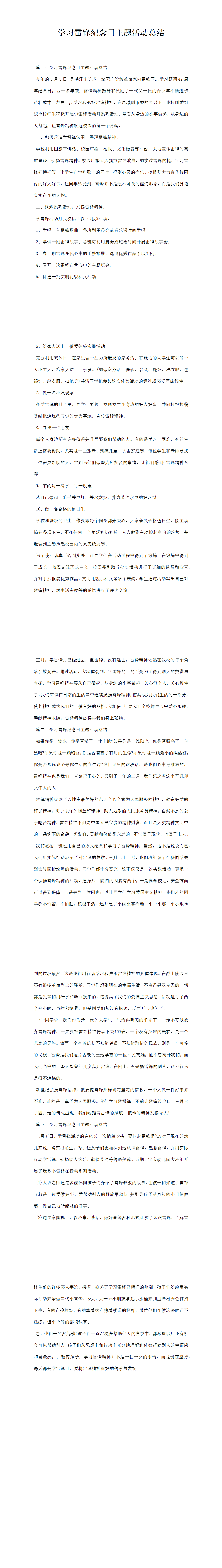 學(xué)習(xí)雷鋒紀(jì)念日主題活動總結(jié)