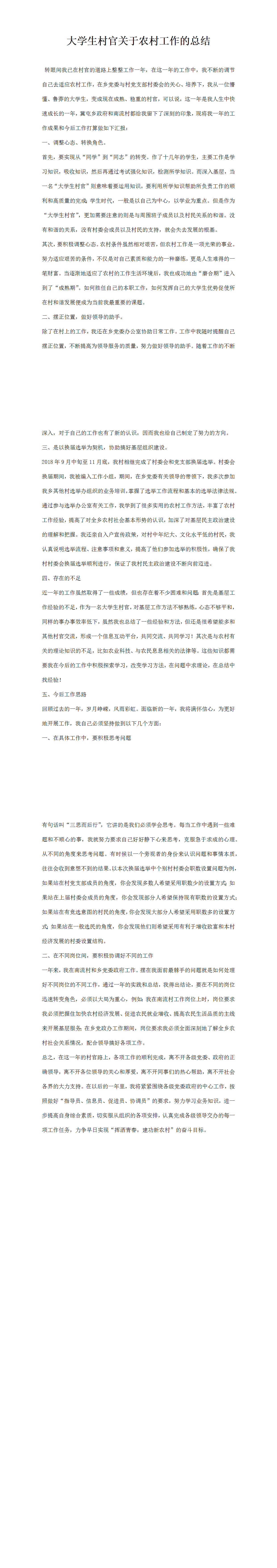 大學生村官關(guān)于農(nóng)村工作的總結(jié)