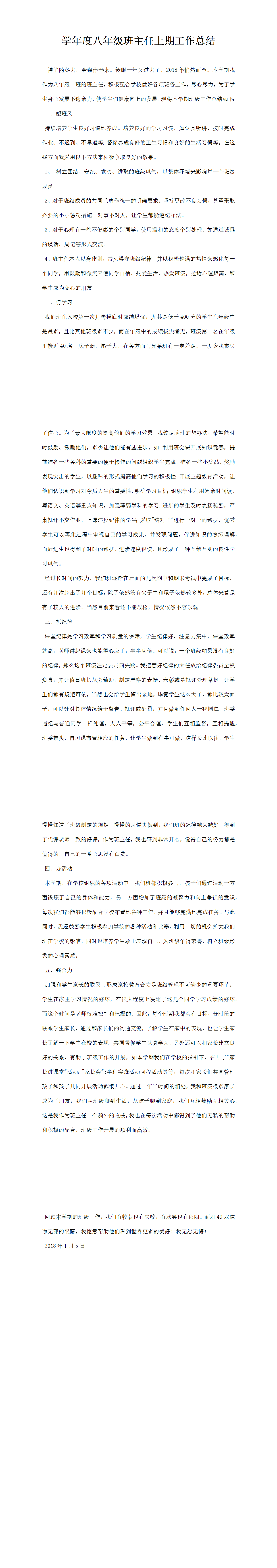 學(xué)年度八年級(jí)班主任上期工作總結(jié)