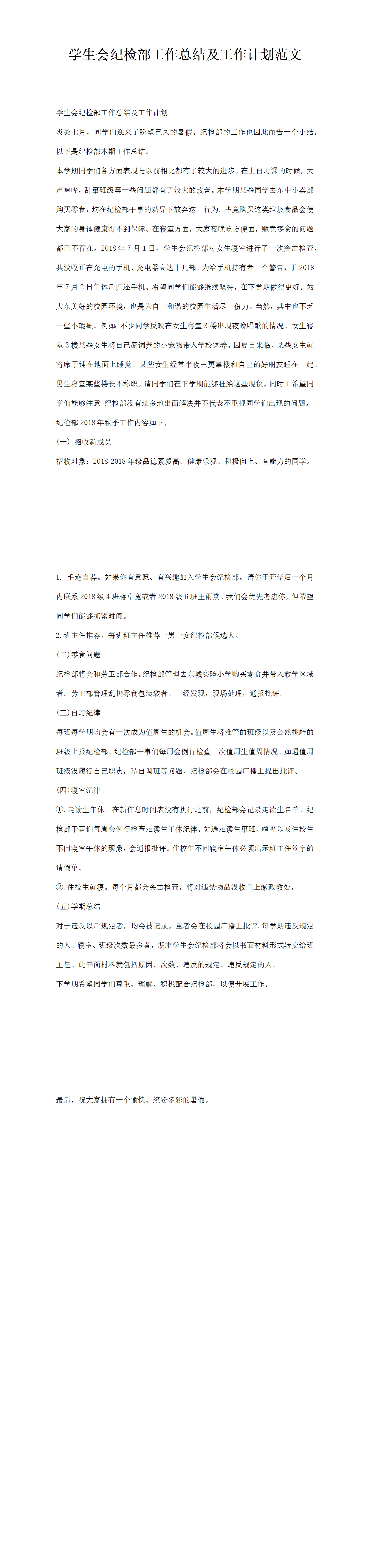 學(xué)生會紀(jì)檢部工作總結(jié)及工作計劃范文