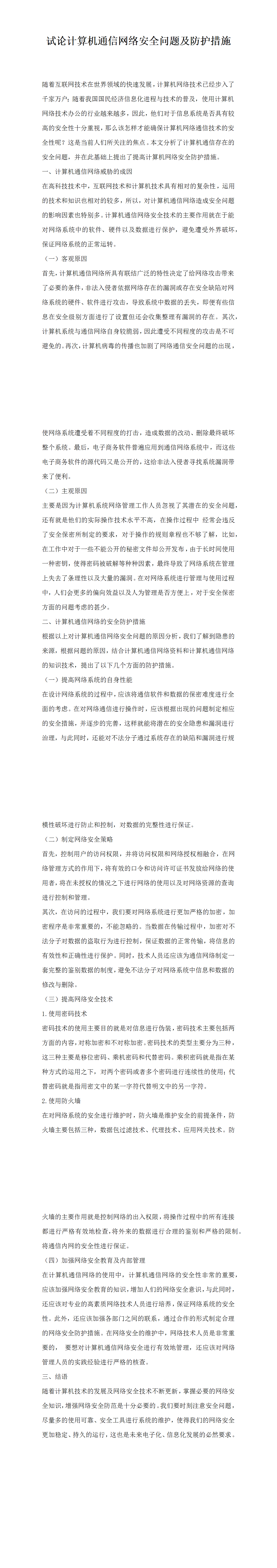 試論計(jì)算機(jī)通信網(wǎng)絡(luò)安全問題及防護(hù)措施