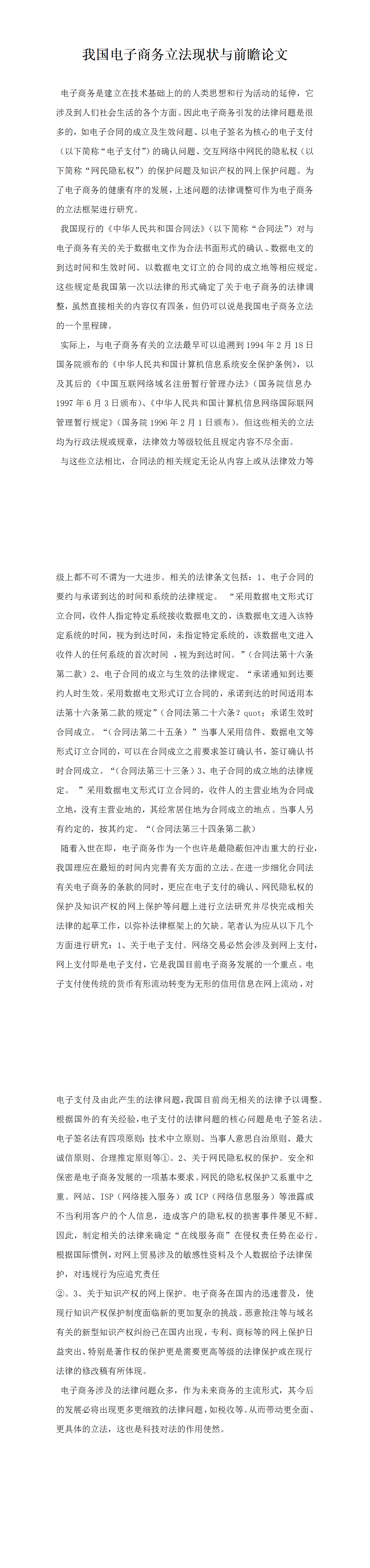 我國電子商務(wù)立法現(xiàn)狀與前瞻論文