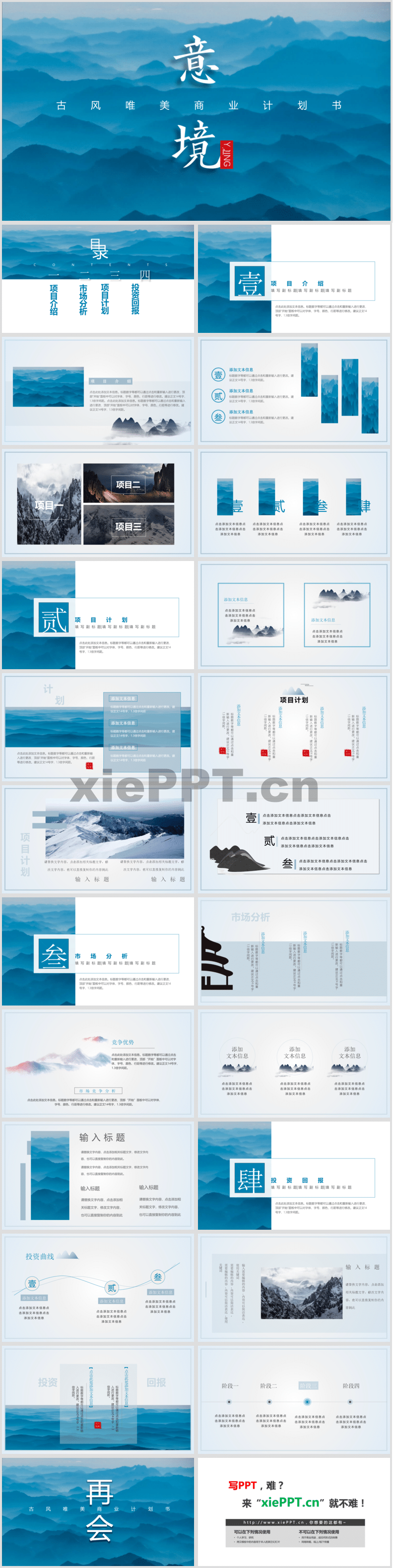 雅致藍(lán)色群山背景的商業(yè)融資計(jì)劃書PPT模板