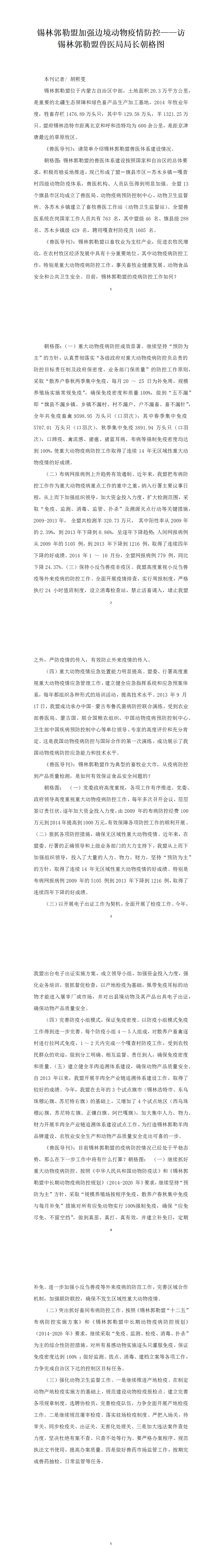 錫林郭勒盟加強(qiáng)邊境動物疫情防控——訪錫林郭勒盟獸醫(yī)局局長朝格圖