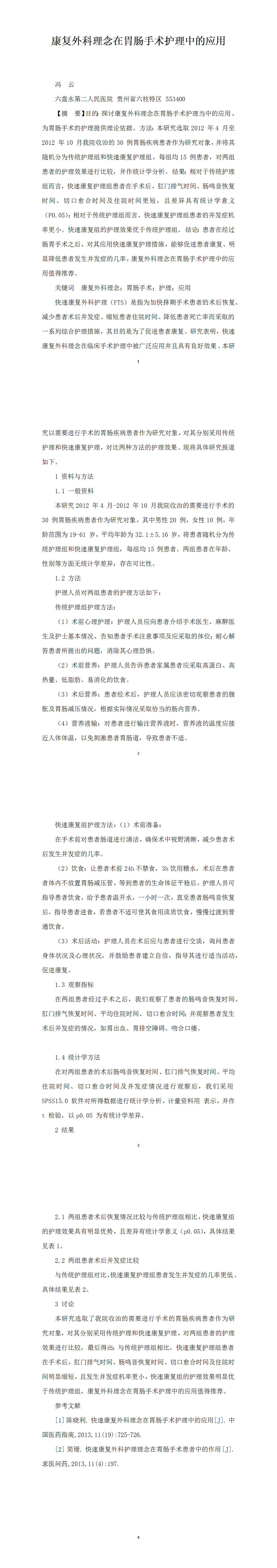 康復(fù)外科理念在胃腸手術(shù)護(hù)理中的應(yīng)用