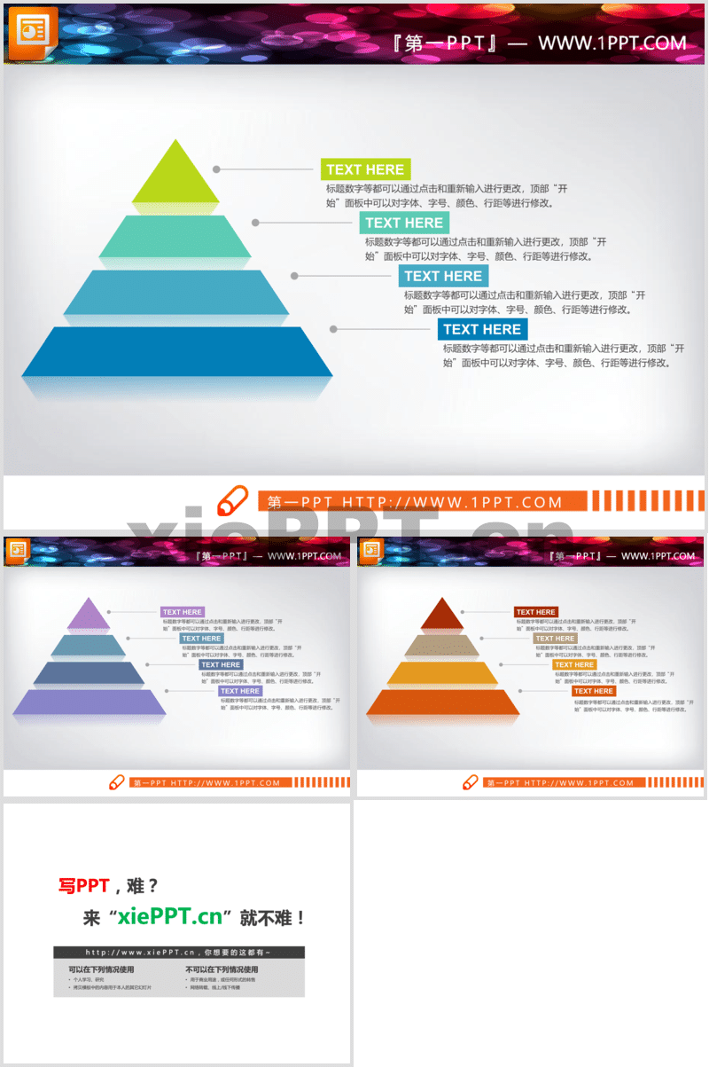 精致彩色微立體金字塔PPT圖表