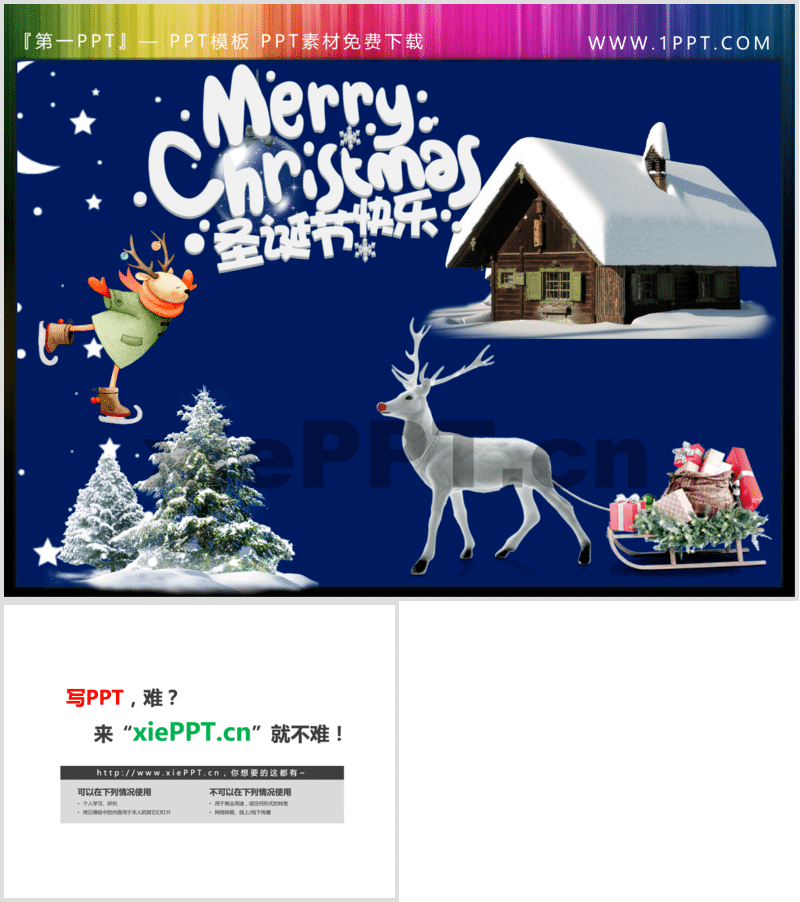 Merry Christmas雪屋馴鹿雪松圣誕節(jié)PPT素材