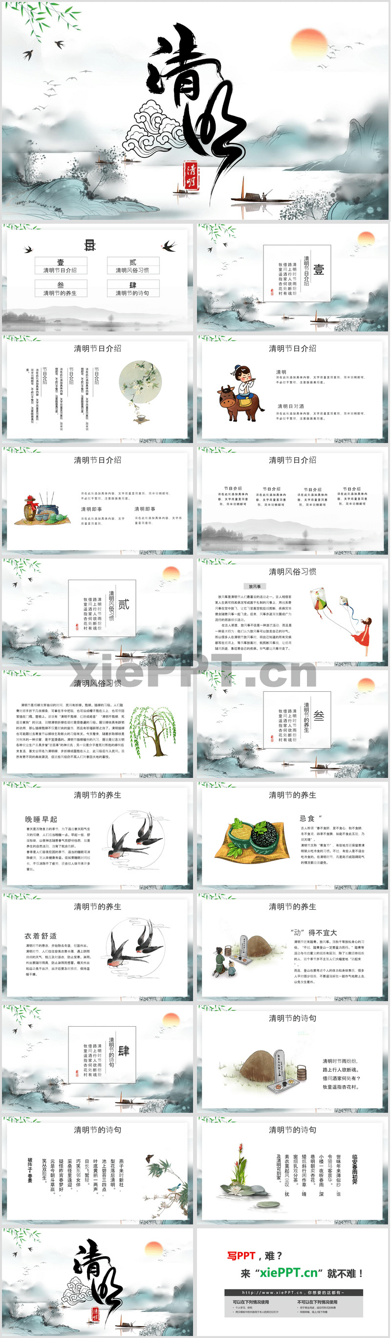水墨中國風(fēng)清明節(jié)介紹PPT模板