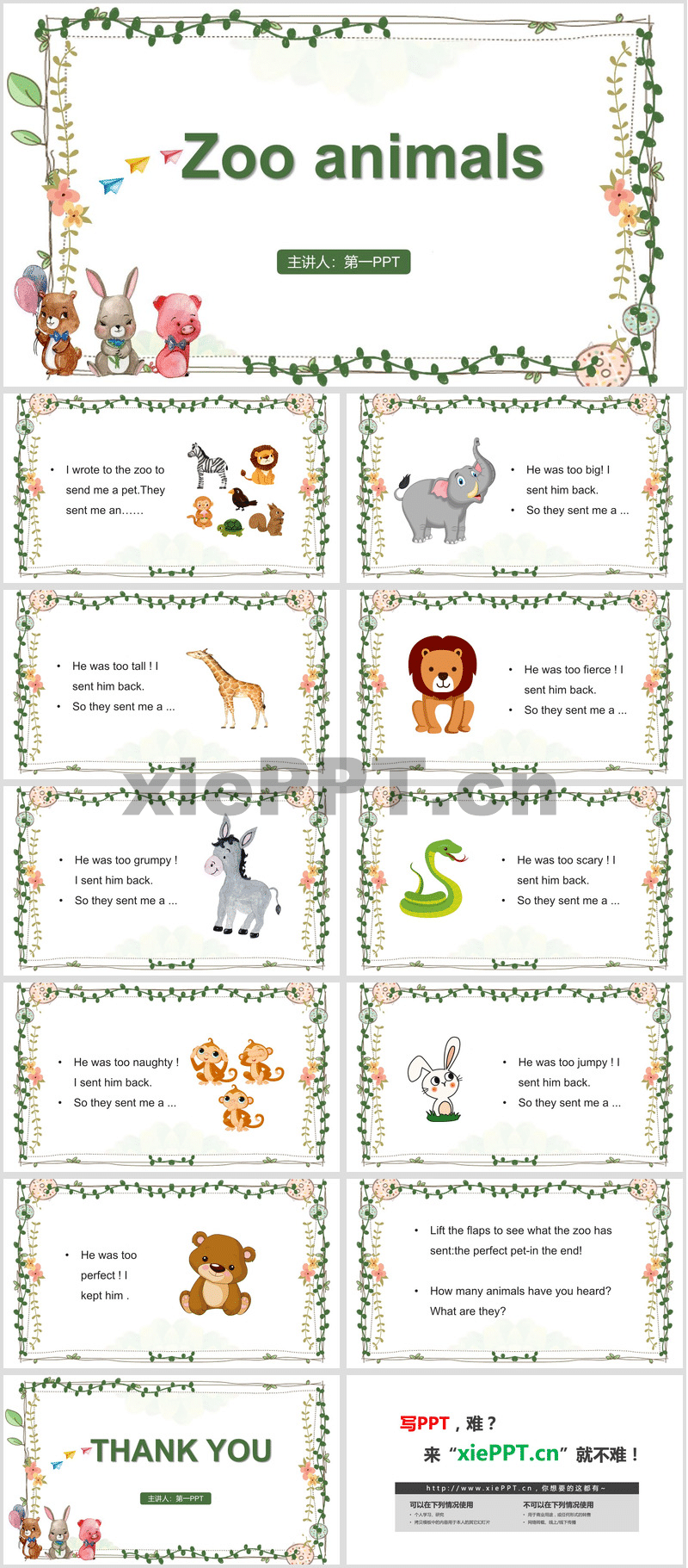 卡通Zoo animals動物園的動物PPT繪本下載