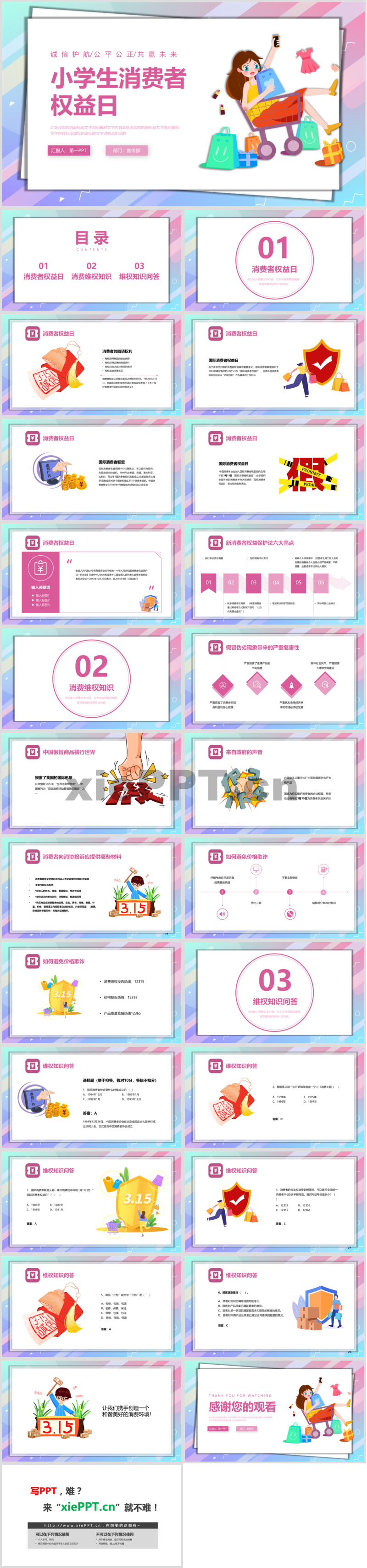 彩色小學(xué)生消費(fèi)者權(quán)益日主題班會(huì)PPT模板