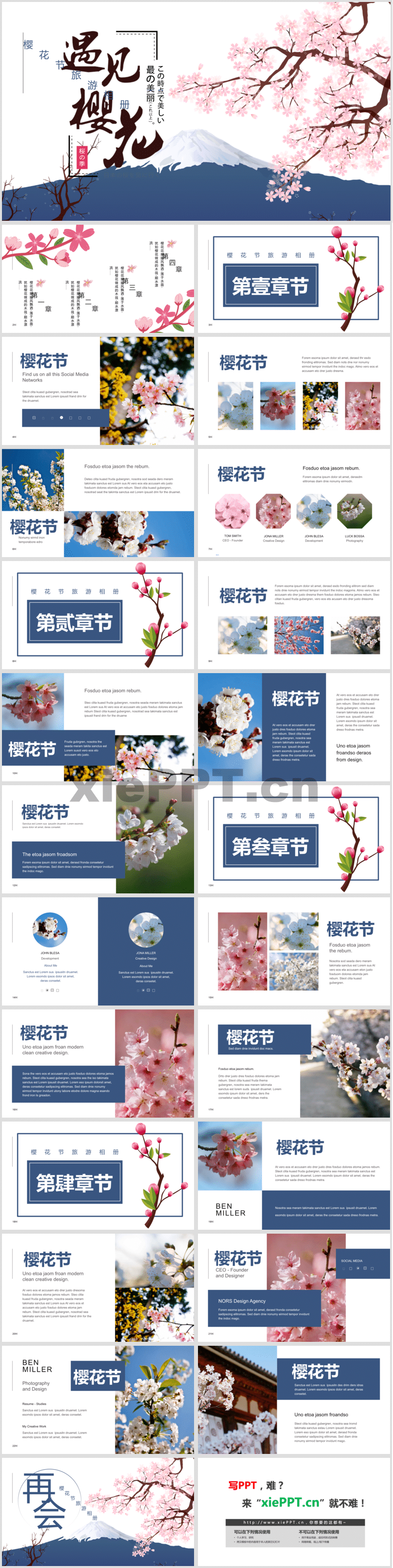 矢量手繪“遇見(jiàn)櫻花”旅行相冊(cè)PPT模板免費(fèi)下載