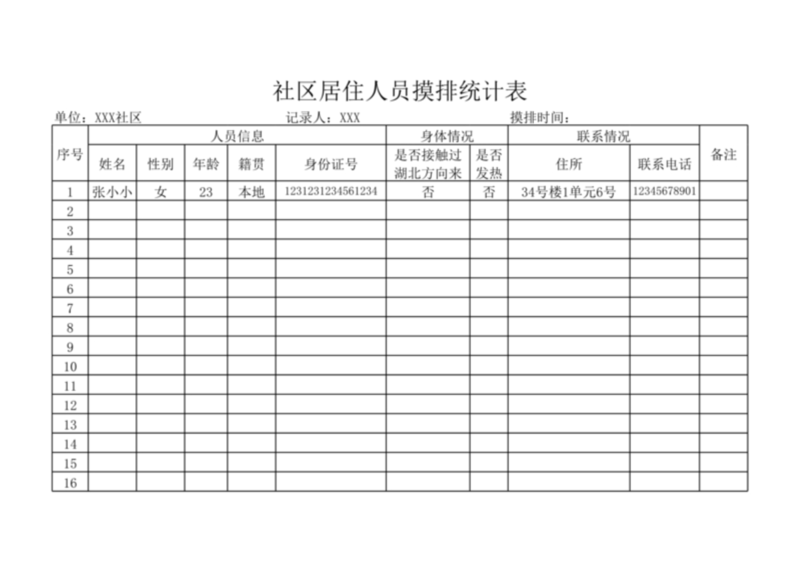 社區(qū)居住人員摸排統(tǒng)計(jì)表