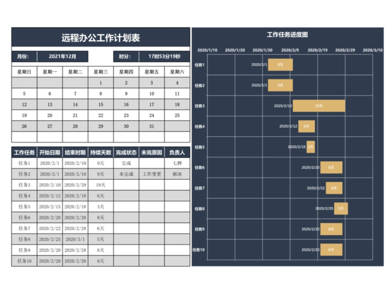 遠(yuǎn)程辦公工作計(jì)劃表-日歷甘特圖