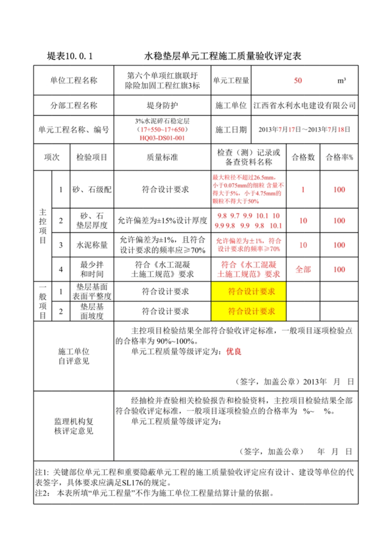 水穩(wěn)墊層單元工程質(zhì)量驗(yàn)收評(píng)定表