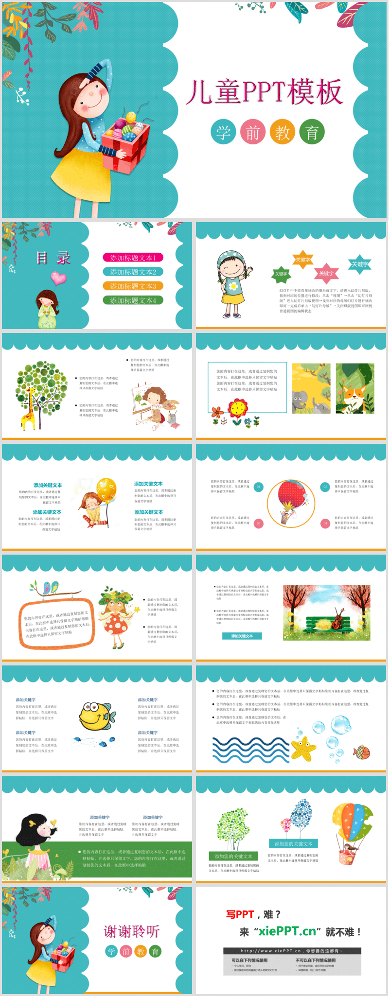 可愛(ài)卡通學(xué)前教育兒童公開(kāi)課培訓(xùn)PPT模板